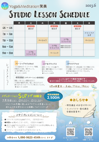 6月の予定表が大変遅くなりましたが掲載致します。